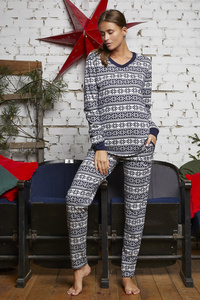 Alaska Piżama Damska długi rękaw, długie spodnie Italian Fashion - druk/granatowy