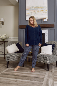 Sajna Piżama Damska długi rękaw, długie spodnie Italian Fashion - granat/druk