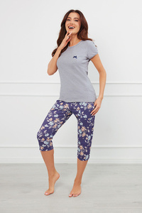Pulia Piżama Damska krótki rękaw, 3/4 spodnie Italian Fashion - melanż/druk