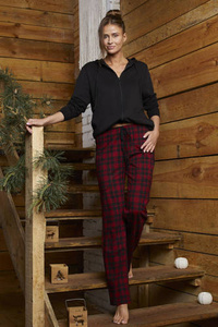 Kasjana Piżama Damska długi rękaw i spodnie talian Fashion- czerwony/druk czerwony