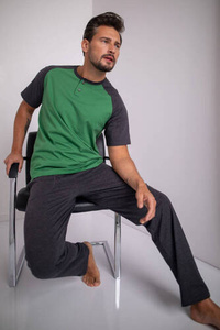Aleksander Piżama Męska krótki rękaw, długie spodnie Italian Fashion - zielony/c.melanż