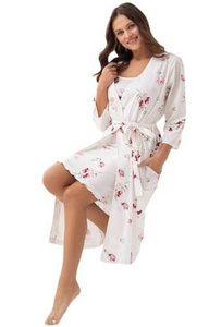 668 Piżama damska rozpinana Luna - ecru-różowy