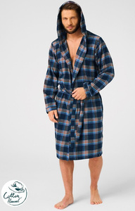 MGL 431 Szlafrok męski Key jeans – kratka, soft, szalowy kołnierz