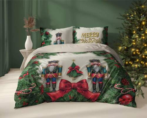4938 B Pościel flanelowa świąteczna Dziadek do orzechów Detexpol zielony