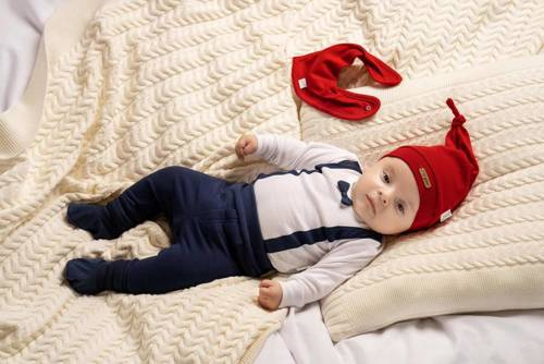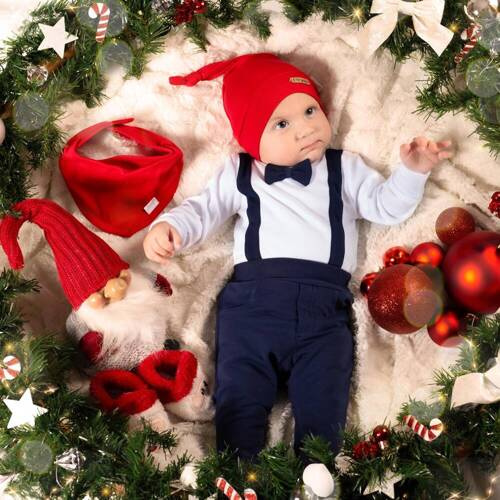 Komplet 163022 "Magia Świąt" czapka, apaszka, body i spodnie Nicol - granatowy