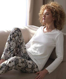 435 Piżama damska Cana Interlock ecru – bawełniana, z długim rękawem i spodniami