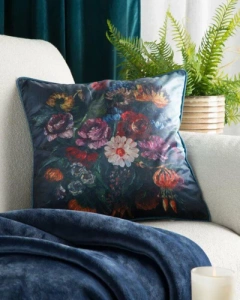 Velvet 113 poszewka welurowa kwiaty Eurofirany czarny/pomarańczowy