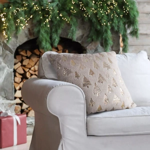 Chp 193 Poszewka świąteczna Eurofirany ze złotą choinką beżowy– elegancka dekoracja na Boże Narodzenie