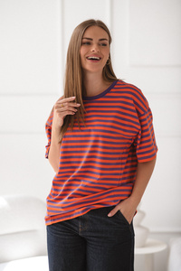 Mamahood T-shirt ciążowy i do karmienia Milk&Love czerwono-różowe paski– wygodny i stylowy