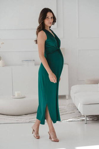 Lovely Dress Midi rękaw 3/4 sukienka ciążowa i do karmienia Milk&Love butelkowa zieleń