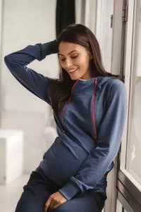 Koszula nocna ciążowa i do karmienia Day & Night Milk&Love granatowa krótki rękaw