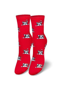 1283-020 Pieski w czapce Świąteczne Skarpety damskie Milena - 02 czerwone