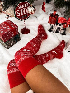 1276 Zakolanówki damskie świąteczne Milena - czerwony