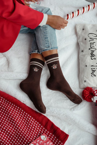( ilość produktów: 114 )1283-014 Renifer prążek z paskami Świąteczne Skarpety damskie Milena - brązowy