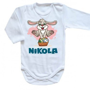( ilość produktów: 1118 )"Wielkanoc zajączek z koszyczkiem z imieniem" Moocha body długi rękaw biały