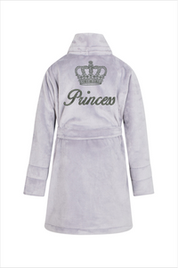 Princess + korona Szlafrok dziecięcy polarowy ByShelly - szary/złoty