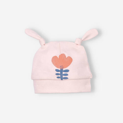 ABN-4771/JRÓ Pink Flowers Czapka niemowlęca z bawełny organicznej Nini różowy