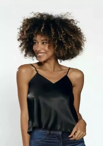 Flowers DK-TK Satynowy top damski DKaren - czarny 008