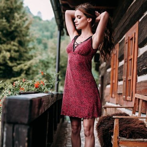 318 Koszula Nocna, ciążowa, do karmienia MIRACLE - bordowe łezki