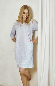 3419 Demi Koszula nocna Taro– bawełna, kwiaty, krótki rękaw