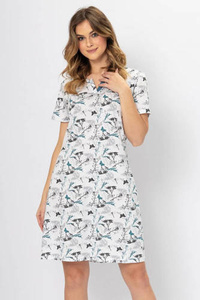 86410 Adelajda koszula nocna z rozpinanym dekoltem Mewa kwiaty