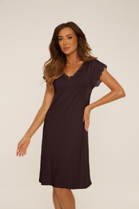 Koszula nocna Victoria Donna wine– wiskoza, koronka, krótki rękaw, długość przed kolano