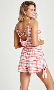 Kasali Piżama Damska krótki rękaw i 3/4 spodnie Italian Fashion - łosoś/druk