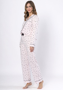 317 Piżama damska Luna ecru – bawełna, długi rękaw, klasyczny komfort