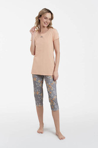 Ramira Piżama Damska krótki rękaw i 3/4 spodnie Italian Fashion - druk/cappucino