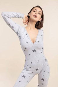 Asama Rozpinana Piżama Damska długi rękaw, długie spodnie Italian Fashion - ecru/druk