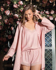 Styl Piżama Damska wąskie ramiączko, spodenki Italian Fashion - pudrowy róż