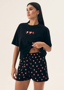 Libra Piżama Damska krótki rękaw, spodenki Italian Fashion - różowy/druk