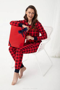Evora Piżama Damska długi rękaw, długie spodnie Italian Fashion - czerwony/druk