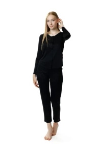 Piżama Sabrina 1/2 Donna czarna– elegancki satynowy komplet z koronką i szortami
