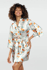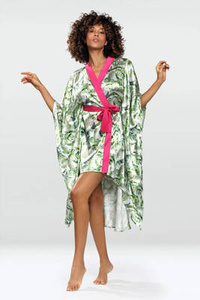 DORITA Szlafrok Damski Satynowy Italian Fashion- druk/zielony