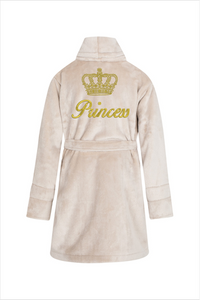 Princess + korona Szlafrok dziecięcy polarowy ByShelly - beżowy/złoty