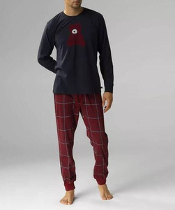 NMP-377 Piżama męska długi rękaw, Atlantic- granatowy burgundowy