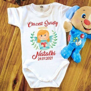 "Chrzest dla dziewczynki z imieniem" Moocha body krótki rękaw biały