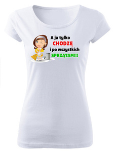 ( ilość produktów: 983 )"A ja tylko chodzę i po wszystkich sprzątam" koszulka damska Dzień Mamy Moocha biały