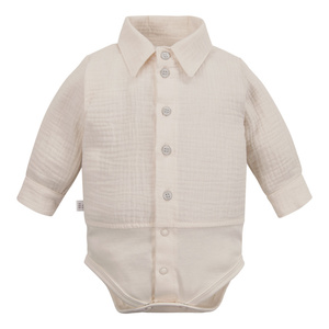 Ceremony Body koszulowe muślinowe z kołnierzykiem dla chłopca Eevi eleganckie- beżowe