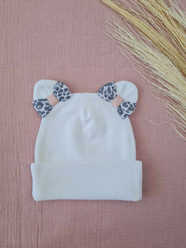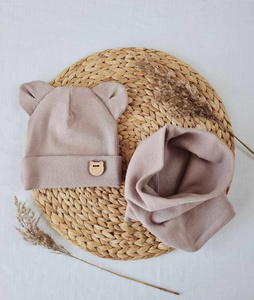 15U Teddy Czapka z uszkami prążek podwójna Marija - cynamon