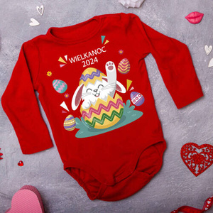 "Wielkanoc 2024 z króliczkiem" Moocha body długi rękaw czerwony
