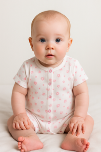 Pajacyk niemowlęcy Martex w różowe kwiatki – bawełna, wygodny, zapinany, uroczy wzór