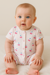 „Wisienki” Pajacyk niemowlęcy Martex – bawełna, wygodny, zapinany, uroczy wzór