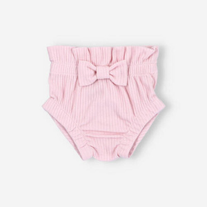 KAR-0025 Bloomers Krótkie spodenki z dzianiny prążkowej z kokardką Lagarto Verde - różowy