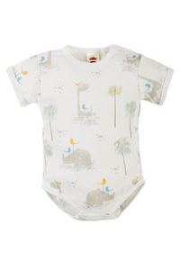 Body z krótkim rękawem "DINOSAUR" Makoma ecru