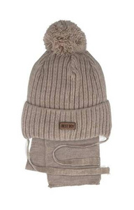 48-316 Komplet czapka+szalik AJS ciemny beżowy