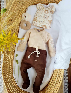 KAR-0017/ECR Komplet niemowlęcy z bawełny premium Lagarto Verde - ecru