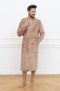 Mimas Szlafrok męski z kapturem Italian Fashion- camel