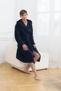 Mimas Szlafrok męski z kapturem Italian Fashion- granatowy